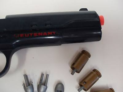 I recall trying to play with these two particular toy guns that had actual plastic bullets that were spring loaded and could actually shoot through the toy gun barrels. Not very far, mind you as the springs were built into the cartridge casing itself and replicated the look of a real bullet! But, some amazing toy technology from the 1960’s.